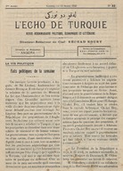 L'Echo de Turquie, revue hebdomadaire politique, économique, littéraire.
