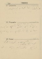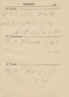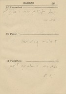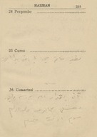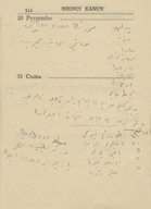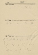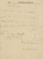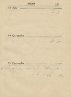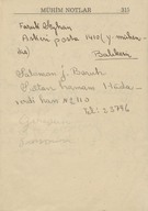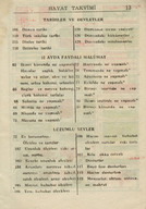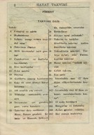 "1943 ansiklopedisi muhtıralı - haritalı hayat takvimi 13üncü yıl". Demiryollarını gösteren Türkiye haritası. Boğaziçi haritası. Hayat Vilâyeti haritası. Çanakkale Vilâyeti haritası. İzmir Körfezi haritası. Latife Hanım, Hale, yenge, amca, İsmet Hanım, Lütfiye, Nuran, Şemsi, Melahat, Reyhan, Mazhar, Meliha, Fatma, Bahri Bey, Bedia, Mustafa Bey, Zehra, Bedri Bey, Şinasi, Yıldız, [Tütü], Refah; Zehra, Ferid, Osman, Hilmi, Nevin, Fevzi, Melek, Şükrü Efendi, Leman, Kerami Bey, Tahsin, İhsan Sami, Ayşe, Şaika, Fahri, Zerrin, Celali Bey, Hayri, İzzet Mansur Bey, Faruk, Ertuğrul, Nebahat Hanım, [Sabiha], kaymakam, Hakkı K., Rus Madam, Nur, Kamil Bey, Fahriye, Sabiha, Şemsi, Faruk, Cevad, Feyzi Bey, Cemile, Hale, Safiye, Nuran, Melahat, Aliye, Azade, Asaf, dişçi, Ferid, Rıfat, Behzat, Mazhar, Suad Bey, Kazım, Mahir Bey, Azade, Muhiddin Bey, Şükrü Kamil Bey, İffet, Ali A., Kenan Bey, Remziye Hanım, Suzan Hanım, Huriye, Hatime, Güzin, Adil, Fikret, İbrahim Paşa, Ermeni Madmazel, Fikri Bey, Şükrü Bey, Ahmed Şükrü Bey, Mansure, Sema, Nevzat, Yahya, Mevhibe, Rüştü Bey, Makbule Hanım, Seniye, Nusret, Adil’den bahsedilmektedir. Ajandada bahsi geçen mekânlar: S. Sineması, Ada, Ada Camii Sokağı, Bakırköy, İstanbul, Pazar, Yıldız Sarayı, Kasımpaşa, a. hastanesi, Üsküdar, Eyüp, Kalamış, Park Oteli, Darülaceze, Şile, Bursa, Karadeniz, Akhisar, Göztepe, Mecidiyeköy, Eyüp Camii, Yakacık, [Saray Sineması], [Sur Sineması], Büyükdere, Beşiktaş. Ajandanın sahini gün içinde yaptığı işler, gittiği mekânlar, görüştüğü arkadaşları, arkadaş ziyaretleri, alışverişler, Ada'daki ev, Ada'ya taşınması ve kiracılar, annesinin vefatı ve mezarına yaptığı ziyaretler, para meselelerinden, vapur, Refah'ın hastalığı, yaptığı telefon görüşmeleri, siparişleri, hava durumu ve sinemaya gittiklerinden bahsetmektedir. Günlükler dışında defterin son bölümündeki sayfalarda alışveriş listesi; Faruk Siyhan ve Salomon J. Baruh’un adresleri; yemek tarifi; inşaat malzemeleri listesi ve hesaplamalar; Balıkesir’de bir adres; aylar ve rakamlar, Yenikapı’da bir adres; Su iskelesi, aylar ve rakamlar; Aksaray’da bir adres; lagasteremya ve hesaplamalar; hesaplama notları, 2 kuruşluk damga pulu ve “İstanbul Maârif Kitaphanesi 10 İkinci Kanun 1943” damgası bulunmaktadır.