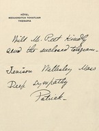 Includes Dr. Patton's program/itinerary for Constantinople and surroundings. As well as a correspondence to Peet concerning his tour of Turkey, India and Africa to visit the majority of the stations (Boston, 1910 Oct 18).