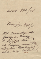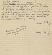 AFMFB206012.jpgUne enveloppe bleue portant le nom à M. Achillea et une note sur les frais de l'affaire Milto. Il y'a seulement une fiche annexée (sur l'affaire Milto) mais l'enveloppe dit qu'il y a aussi la mémoriale. Le sujet de ces mémoriales et fiches ne peut pas être déterminé parce que l'écriture n'est pas lisible.1.18 MBJPEG