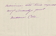 Correspondence from A. J. Bedell, Royal M. Cole, Lillian F. Cole and Madeleine Cole misfiled.