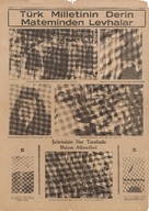 | AATPTAN00001010.jpg | "Atamızın millete vasiyetleri. Biz ilhamlarımızı, gökten ve gaipten değil, doğrudan doğruya hayattan almış bulunuyoruz. Biz bütün Türk milletinin hâdimiyiz. Kuvvet birdir ve o milletindir. Orduya veda: Dâhi Başkumandanın, emrinde zaferlerin harikasını yaratan kahraman orduya son hitâbesi." "Atatürk Millet Meclisi kürsüsünde. Büyük Başkumandan geçen seneki Trakya manevralarında. Gazi Mustafa Kemal, milletini kurtarmak için giriştiği mücadelede; böyler karlar içinde, birkaç saat dinlenerek ne aylar, ne seneler geçirdi." | 3.29 MB | JPEG | |