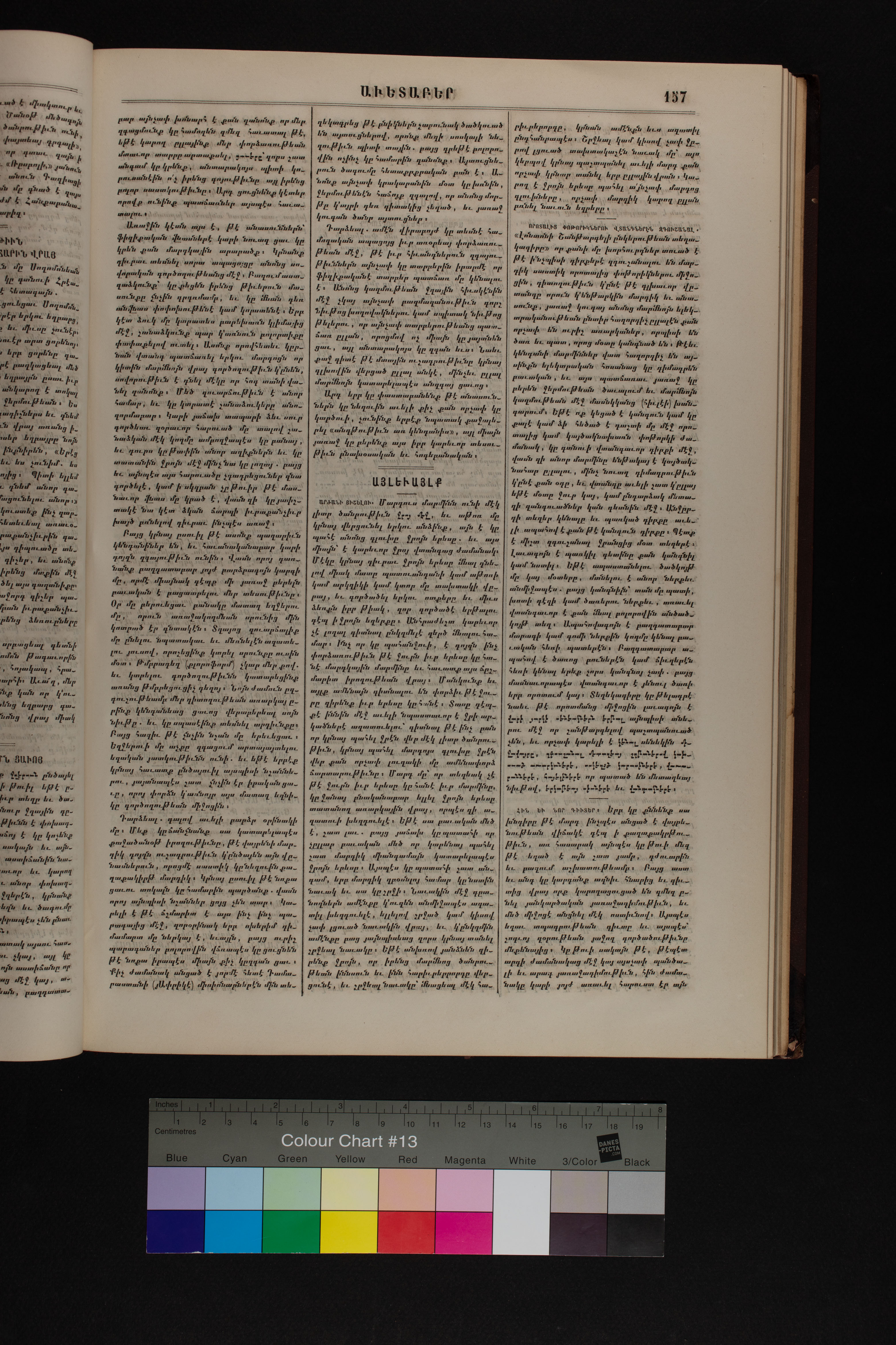 Volume 38-39 (1886) of Avedaper primarily contains articles on Christian religious subjects, ethics, and morals, especially related to the Protestant faith. It reports about happenings and events in the Ottoman Empire’s Armenian Protestant community and includes letters to the editor from contributors located in various cities and towns in Anatolia. Information about the activities of the American Board of Commissioners for Foreign Missions, its personnel, and its schools and other institutions is also presented. It covers local and international political news and includes feature pieces on foreign lands, which offer information about regional history, politics, society, religion, and mission work. It also includes items on a wide range of topics of general interest.