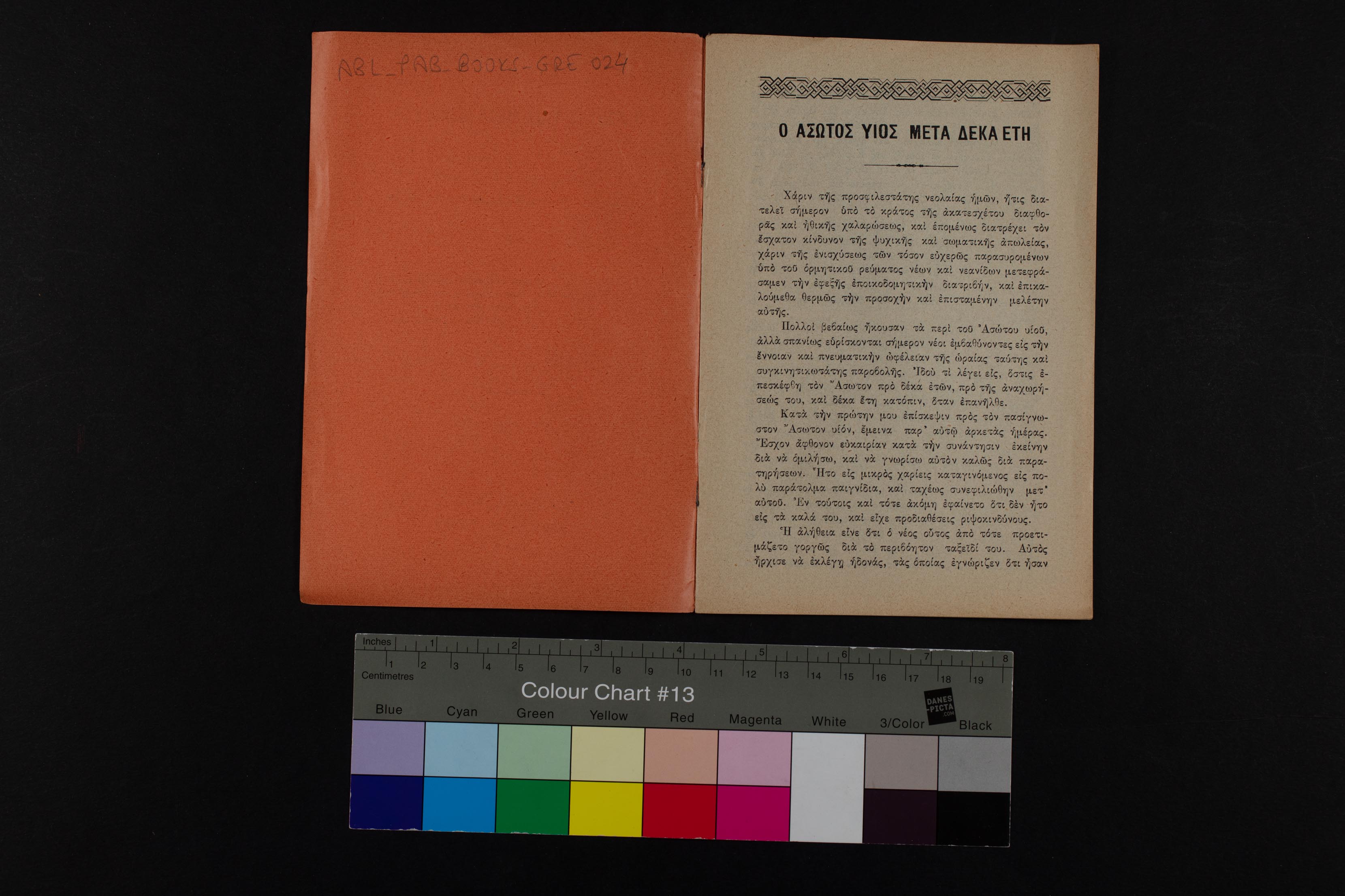 The Greek book collection was first inventoried and added into the American Board Library (ABL) in 2005 by Board archivist Brian Johnson and library assistant Janet Durna. It is included in the library’s larger collection of publications of the American Board (PAB), and it is arranged on the shelves in numerical sequence, with each work coded ABL-PAB-BOOKS-GRE, followed by an inventory number.