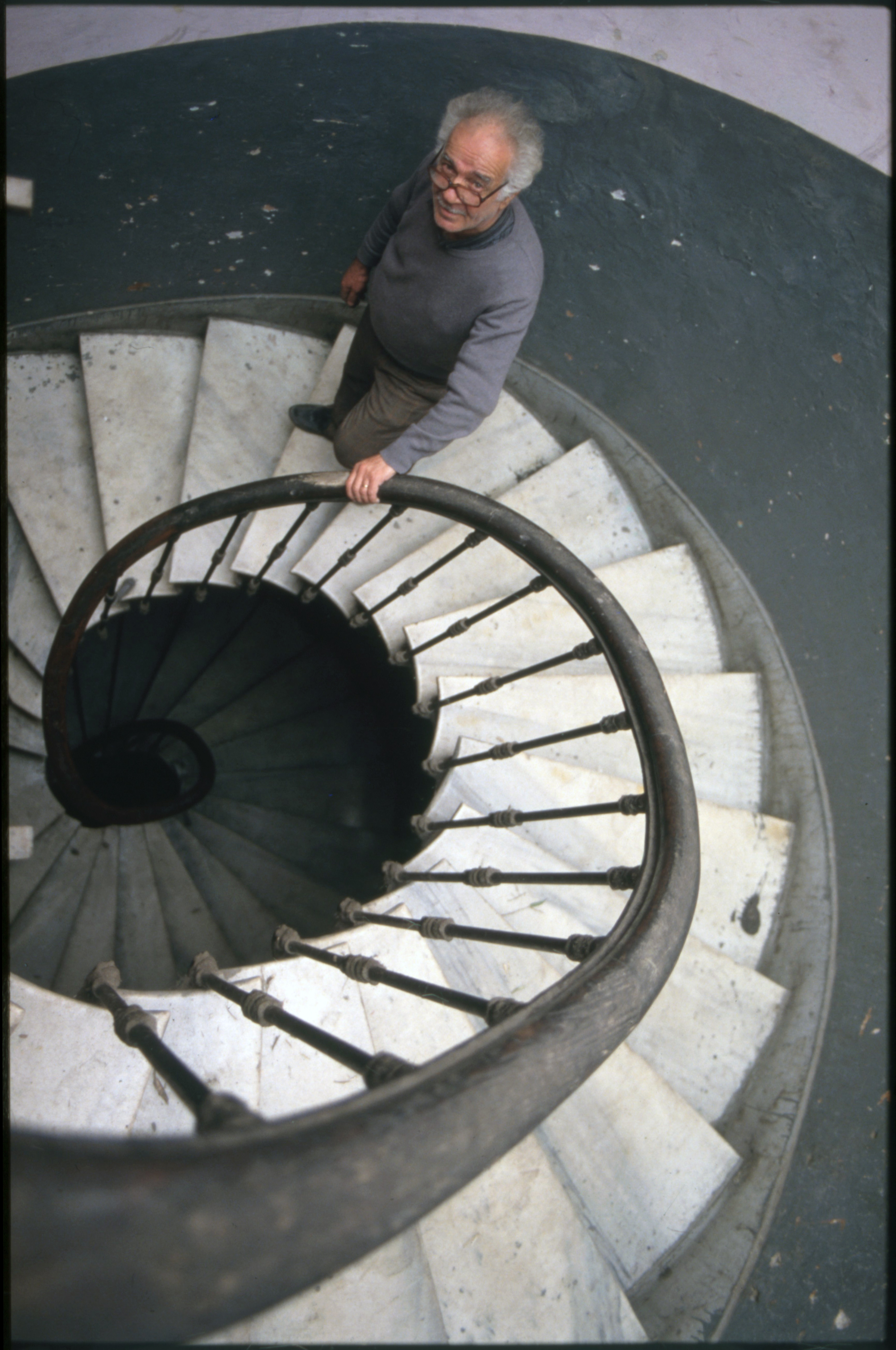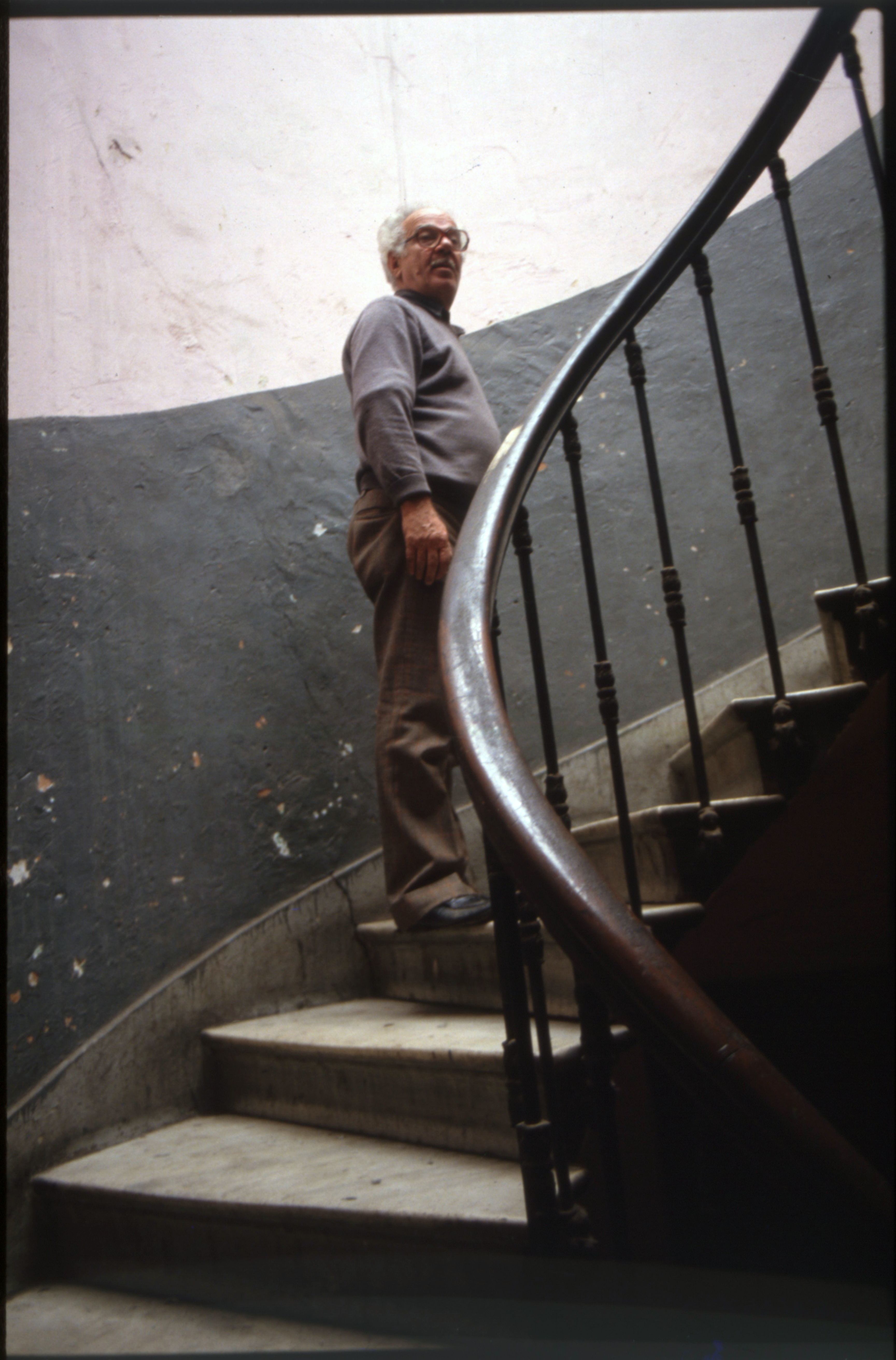 Kostümcü Niyazi Er Mis Sokak'taki Tan Apartmanı'nın merdivenlerinde - Costumer Niyazi Er on stairs of the Tan Apartment Building on Mis Street