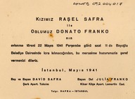 Inventaire du mobilier et d'autres objets garnissant les appartements loués par David Safra. Invitation de mariage de Rasel Safra et Donato Franko. Mémorial et réquisitoire de Mr. Safra.
