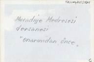 Fotoğraflarda Bursa Muradiye Külliyesi'nin Medrese bölümünün onarımdan önce ve onarım esnasındaki görüntüleri bulunuyor. Medrese 1425 yılında II. Murad tarafından yaptırılmıştır. Yapı, giriş ve dershane eyvanı olmak üzere iki eyvanlıdır. Giriş eyvanından ortada havuzu bulunan revaklı avluya girilir. Revakların arkasında öğrenci odaları sıralanmaktadır. Giriş eyvanın tam karşısında ise Dershane eyvanı bulunmaktadır. Yapı almaşık örgülüdür.